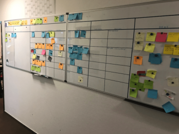 Zúčastnil se celý tým a každý mohl říct svůj názor. Tím se vytvořil pocit vlastnictví společného nového způsobu práce. Bylo opravdu skvělé vidět tu energii a vzrušení a jak všichni přispívají. Vzhledem k povaze naší práce (Engineering) jsme se rozhodli použít techniku Kanban namísto dnes tak populárního Scrumu. Díky celodenní týmové práci jsme přišli s návrhem, jak bude vypadat nový proces – Kanban Board s lístečky na něm.