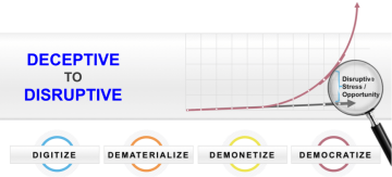 Peter Diamandis hovorí o 6D. Najskôr sa veci digitalizujú (Digitized), potom sa dlho nič nedeje (Deceptive) a prichádzajú akési pochybnosti alebo sklamanie. Potom náhle a rýchlo prichádza radikálna zmena (Disruptive). Kedysi dávno nás to marxisti učili ako zmenu kvantity na kvalitu. Hovoríme o zmene, ktorá prebieha podobne ako exponenciálna krivka – najskôr pomaly, potom explózia. Spoznala to firma Kodak, ale neskoro a tak líder na trhu s fotografickým papierom, ktorý zamestnával 170 tisíc ľudí skrachoval. Hovorí sa, že ho zničili digitálne fotoaparáty, ktoré boli vynájdené už v roku 1975.