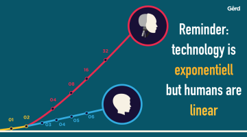 Gerd Leonhard vo svojej knihe Technology versus Humanity zdôrazňuje, že na rozdiel od technológií, sa ľudia rozvíjajú lineárne a nové technológie nie sú cieľom ale prostriedkom pre lepší život.