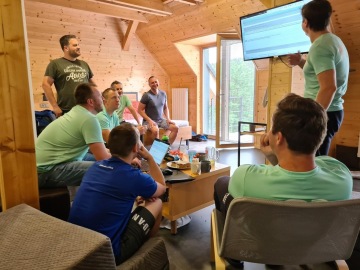 Pravidelně se každého čtvrt roku zastavíme a odjedeme na 4 dny všichni společně někam na chalupu do hor. Bereme s sebou i naše manželky a děti, které se na to vyloženě těší. Bereme to i jako poděkování našim rodinám a především skvělým ženám, kteří se starají o teplo rodinného krbu v době, kdy zrovna nejsme doma nebo se věnujeme našim zákazníkům. Zpravidla jezdíme čtvrtek-neděle, kdy hlavním retrospektivním dnem je pro nás pátek. Nejprve zhodnotíme uplynulé období skrz Klíčové momenty, pak se podíváme na finanční stránku našeho byznysu a následně probíráme různá strategická či operativní témata, která nás posunou vpřed o pomyslný krůček. Večer následuje rituál vděčnosti u rozpáleného ohně a naposledy jsme dělali cvičení na zahození našich strachů. Po práci a ve volných chvílích podnikáme různé aktivity jako jsou výlety do okolí, hrajeme deskovky, posilujeme organismus saunováním, grilujeme nebo jen sdílíme, co je u koho za posledního čtvrt roku nového. Pokud ještě neděláte jednou za čas takový výjezd, vřele doporučujeme. A nezapomeňte vzít i rodiny, bez nich by to totiž vážně nešlo