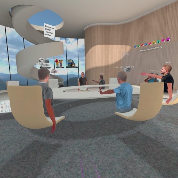 To byla party Pro práci (tedy nejdřív bylo dost zábavy, než byla ta práce) jsme využili Spatial (VR prostor pro spolupráci). Vytvořili jsme si avatara, který vypadá dost bezpečně jako my - každý z nás. Je to sice jen půltělo (bez nohou), ale to nakonec není důležité Ve Spatial jsme se potkali v Lobby. Tam byl hlavní úkol celkem nepřekvapivý - rozkoukat se, naučit se pohybovat, vytvářet post-ity a psát na ně. A taky vytvořit si skleničku a připít si. V zadání úkolů to sice nebylo, ale vzniklo tam spousta užitečných věcí jako kočka ve velikosti krávy, rádio, co nosil Sagvan Tofi na rameni v devadesátkách - my ho měli naštěstí bez zvuku, dort, který mi nakonec přistál kolem mého těla, takže jsem v něm mohla plavat. Po povinném focení jsme se rozprchli pracovat a filosofovat nad tím, co nám digitální svět přináší a naopak bere z pohledu zákaznického servisu a dopadů na náš život, jaké jsou trendy a kde je sledovat.... Den utekl, ani jsme nemrkli.