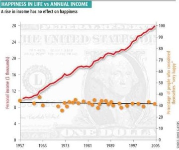 Mimochodem, ukazuje se, že od určité úrovně příjmu se už nezvedá úroveň štěstí, které zažíváte. Tedy, že na úroveň pocitu štěstí mají větší vliv jiné faktory, než že někomu přidáte z 60 na 80 tisíc měsíčně.