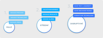 V těch středně velkých inovacích jde o inovování samotného produktu nebo způsobu, jakým se produkt vymýšlí.