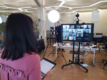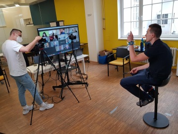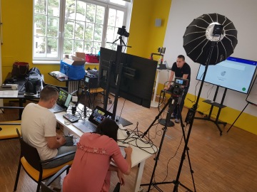 I když je možné zvládnout on-line seminář z tepla domova a s jednoduchou webkamerou, nám se vyplatilo do vybavení investovat. Pronajmout si prostornou místnost, kde bylo dost místa pro obrovský monitor, profi kameru, 360° kameru, jabru pro vylepšení zvuku. K čemu to je všechno dobré? Když necháte natáčení na profíkovi, jakým je již zmiňovaný Petr Vágner, prozradí vám, že účastníci budou mít mnohem lepší zážitek z toho, co uvidí, když jim budete nabízet různé úhly pohledu a prostřihy, takže kromě klasické webkamery, doporučujeme i profíka, který umí zařídit, aby účastníci kurzu neviděli dva dny jen výřez vaší tváře.