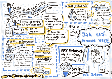 Sketchnote Petrovy přednášky od skvěle pohotových Visual Coach