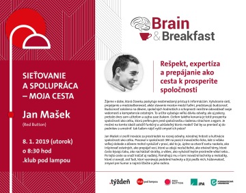 Môj kamarát Jan Mašek pred pár rokmi vymyslel Brain & Breakfast. Pozval zaujímavého hosťa, ktorý prezentoval svoju prácu alebo príbeh a diskutoval so 60-80 ľuďmi v miestnosti.