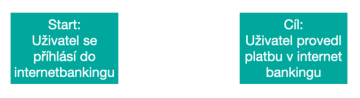 - Startovacího bodu – bod, ve kterém uživatel vstoupí do systému, začne svou interakci (např. Uživatel se přihlásí do webového rozhraní internetového bankingu);