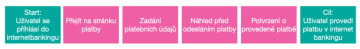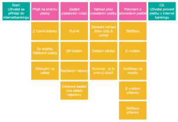 - Cílového stavu – cílový stav, kdy je potřeba firmy/zákazníka naplněna (např. Uživatel provedl finanční transakci).